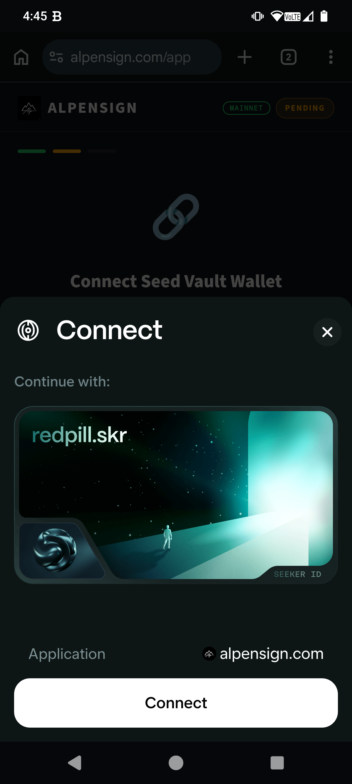 Traditional device attestation depends on Apple or Google saying “this phone is genuine.” TEEPIN replaces that with economic skin-in-the-game: independent Guardians stake SKR tokens to attest Seeker hardware integrity. If a Guardian falsely attests a compromised device, they lose their stake. For banks, this means the device behind every AlpenSign seal is verified by a decentralized network with real financial consequences — not by a vendor’s promise.